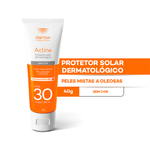 Actine protetor solar FPS 30, indicado para peles oleosas a acneicas, oferece alta proteção solar diária contra os raios UVA/UVB, além de uma potente ação antioxidante, protegendo contra as ações dos radicais livres, prevenindo o envelhecimento e ativos que controlam a oleosidade da pele por 10 horas. Sua textura fluida e não oleosa é absorvida rapidamente, deixando 0% de resíduos brancos.
