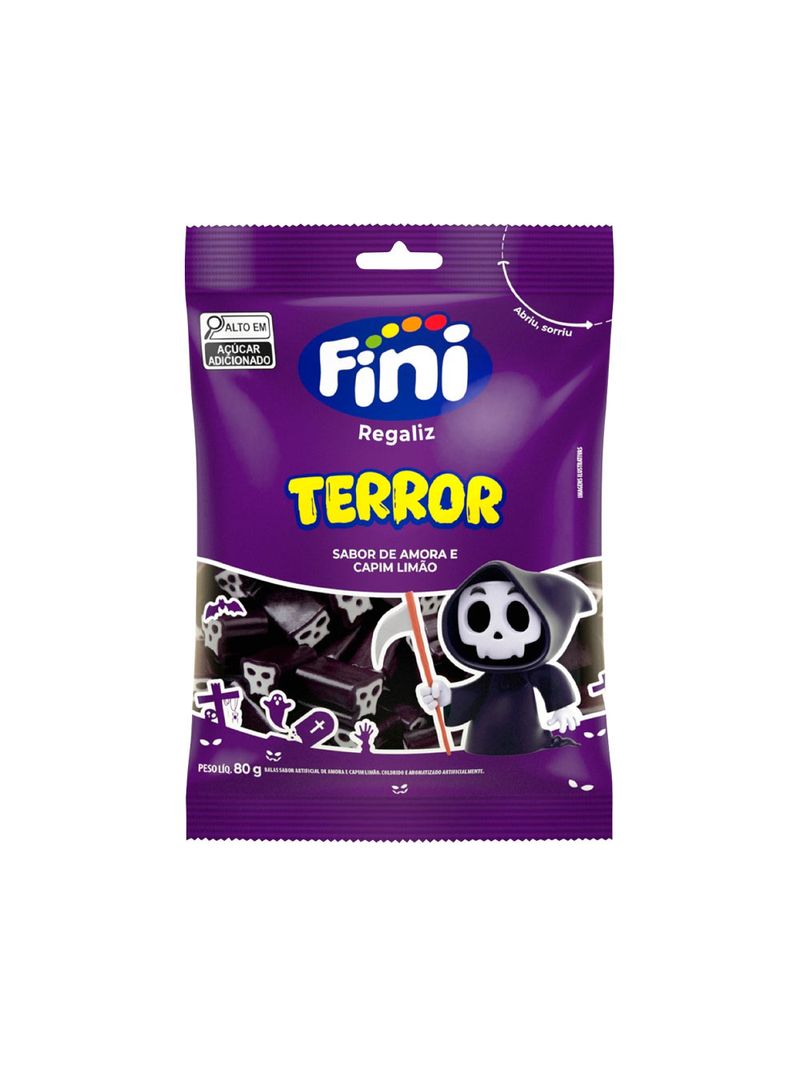 Apresentamos a Bala Regaliz Terror 80g Fini, lançamento exclusivo com sabor amora e capim-limão em tubes de regaliz. Produto diferenciado, ideal para sacolinhas de Dia das Crianças, kits de Halloween ou simplesmente para inovar na hora do doce. Visual temático Terror que se destaca e agrada quem procura algo novo.