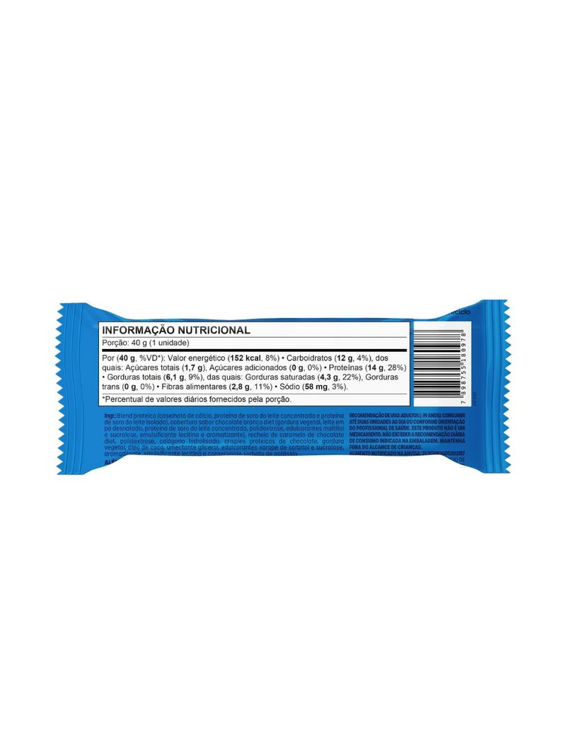 Barra de proteína BOLD Thin sabor Cookies & Cream, o sabor mais queridinho pelos nossos BLovers. Contém 12 unidades de barrinhas branco: tem recheio de ganache branco com crispies crocantes e uma irresistível cobertura de chocolate branco. É perfeita como alimento pós-treino, mas também salva antes da corrida, no lanche na aula ou no trabalho.