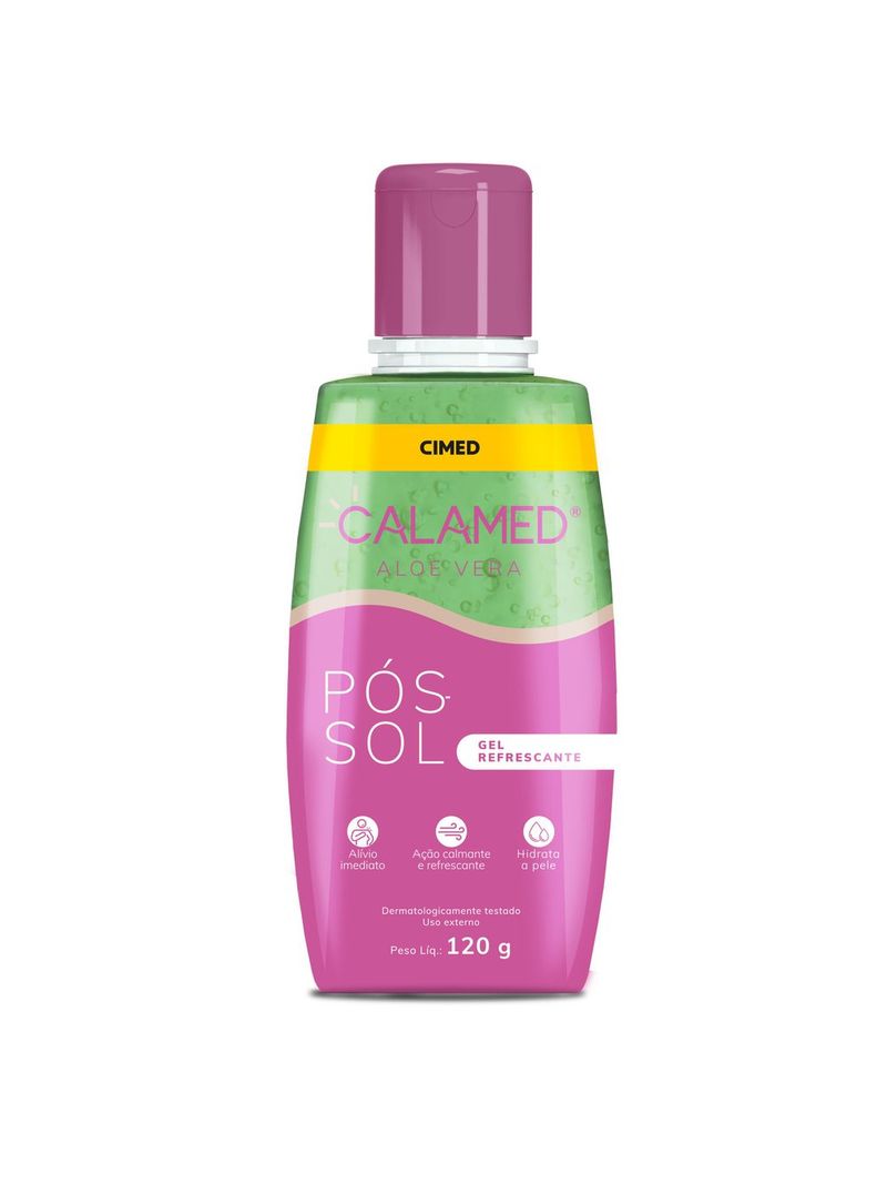 Calamed Gel é composto por aloe vera e indicado aliviar irritações na pele e queimaduras causadas pelo sol.