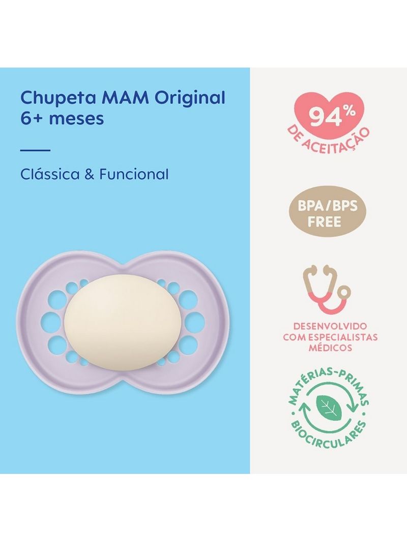Mamãe e BebêBicos e ChupetasChupetasChupeta Mam Original Silicone Lilas A Partir De 6 Meses Ch20312