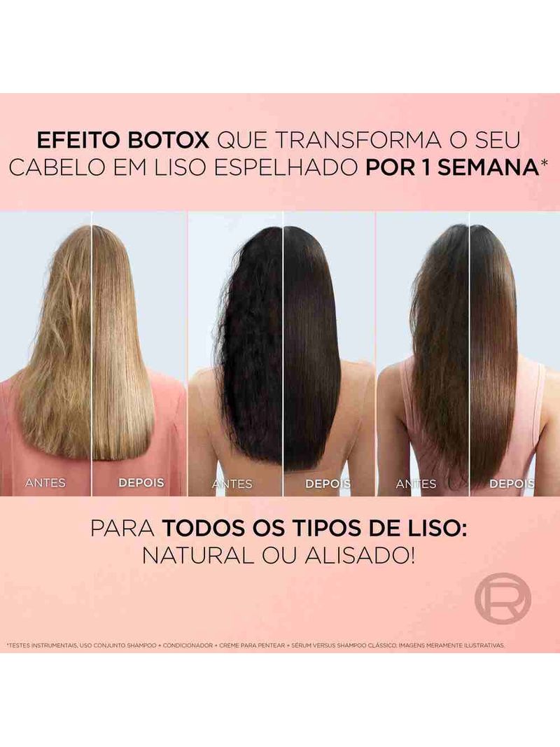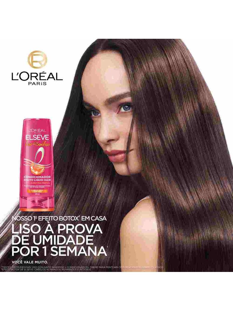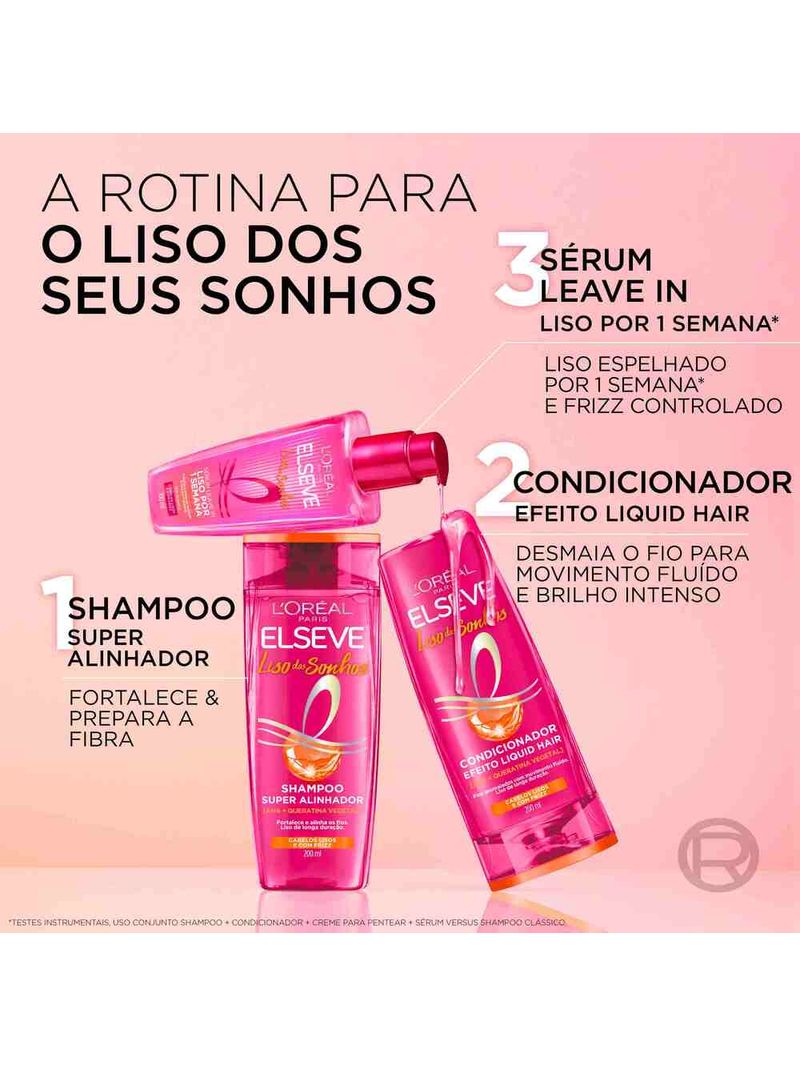 O Condicionador Desmaia Fios Liso dos Sonhos tem em sua fórmula queratina vegetal líquida e manteiga de cacau, tratando o cabelo da raiz até as pontas