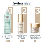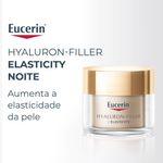 O Creme Facial Eucerin Hyaluron-Filler + Elasticity Noite foi especialmente formulada para regredir rugas profundas, melhorar a elasticidade e nutrir a pele frágil e madura. A mistura inovadora de Eucerin de Ácido Hialurônico de alta e baixa molécula visivelmente arruma rugas profundas e o Dexpantenol que melhora a hidratação da pele, mantém a sua elasticidade e melhora sua textura. O Arctiin (um ativo comprovado para acelerar a renovação do colágeno nas células da pele) trabalha ao lado de Silymarin (um poderoso antioxidante que protege o colágeno e a elastina da degradação e melhora a circulação da pele em um nível celular). A pele se sente firme, suave, fresca e radiante.