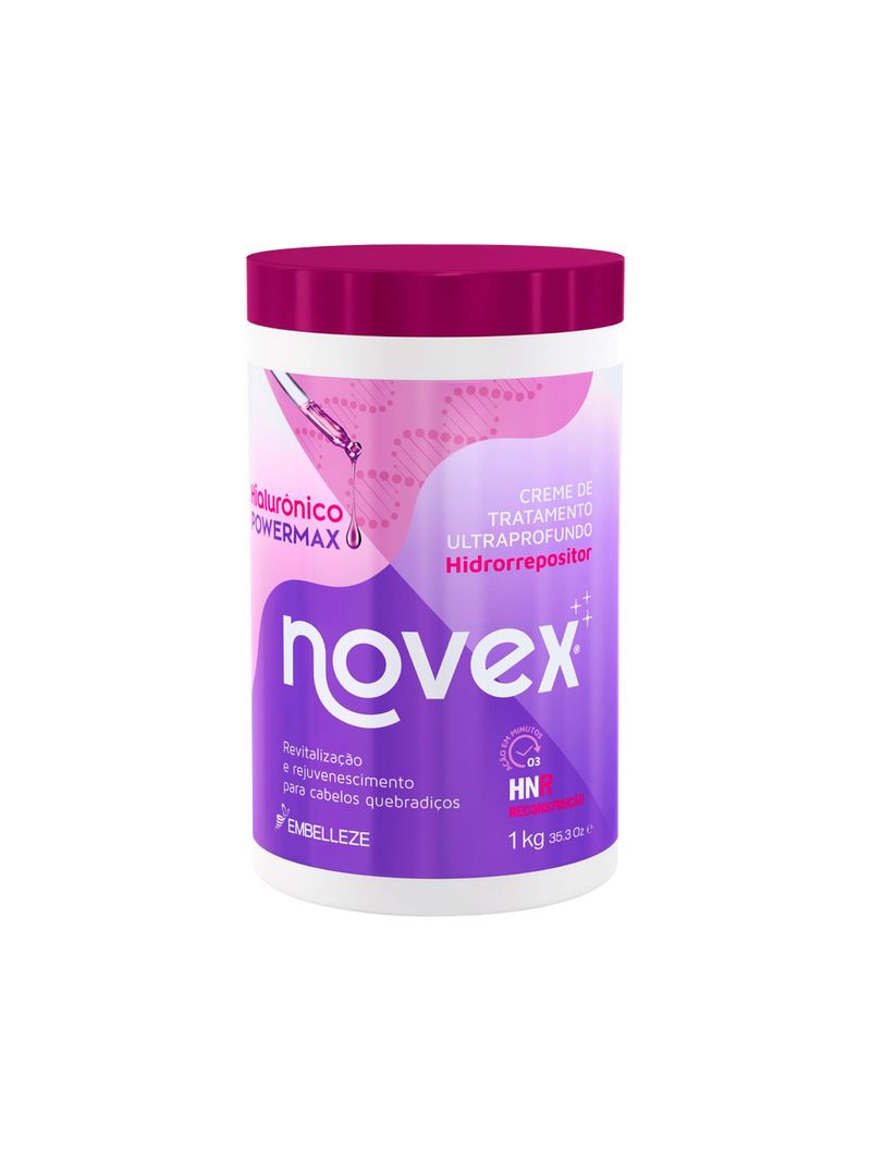O Creme de Tratamento Novex Hialurônico Power Max Hidrorepositor é ideal para revitalização e rejuvenescimento de cabelos quebradiços. Age nos fios em 3 minutos e é indicado para a etapa de reconstrução do cronograma capilar.