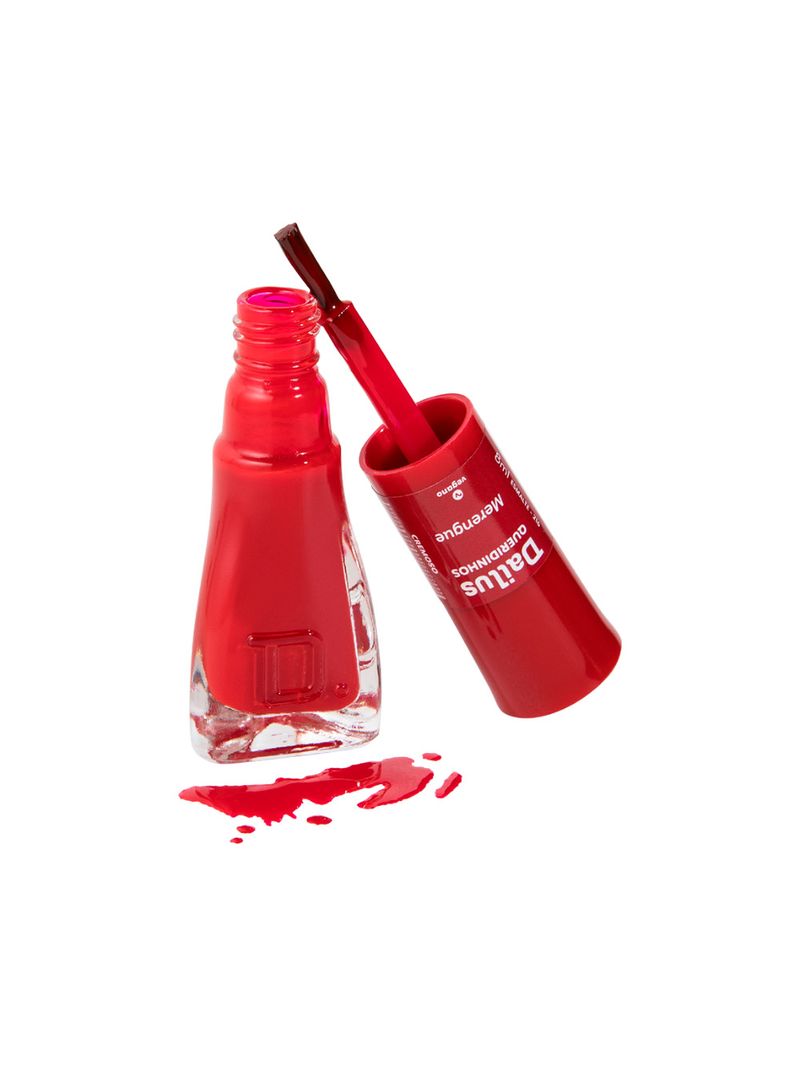 Um belo vermelho no kit manicure nunca é demais, né? Abra espaço para um vermelho intenso, o Merengue! O vidrinho, que faz parte da coleção Queridinhos, tem alta cobertura (e você não vai precisar aplicar várias camadas para chegar na cor ¿ ufa!), acabamento cremoso e é bem brilhante. A dupla tampa anatômica + pincel big flat brush é implacável na hora da esmaltação, deixando o passo a passo muito mais fácil e prático. E mais: o esmalte seca bem rápido e dura muito nas unhas!