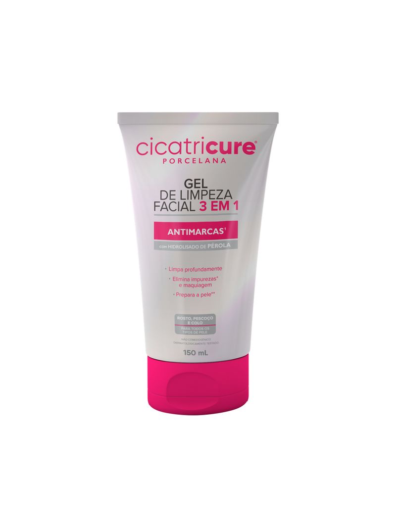 Indicado para todos os tipos de ele, o Gel de Limpeza Facial 3 em 1 Antimarcas com hidrolisado de pérola, limpa profundamente, elimina impurezas e maquiagem e prepara a pele, como primeiro passo da rotina de cuidado com a pele.?