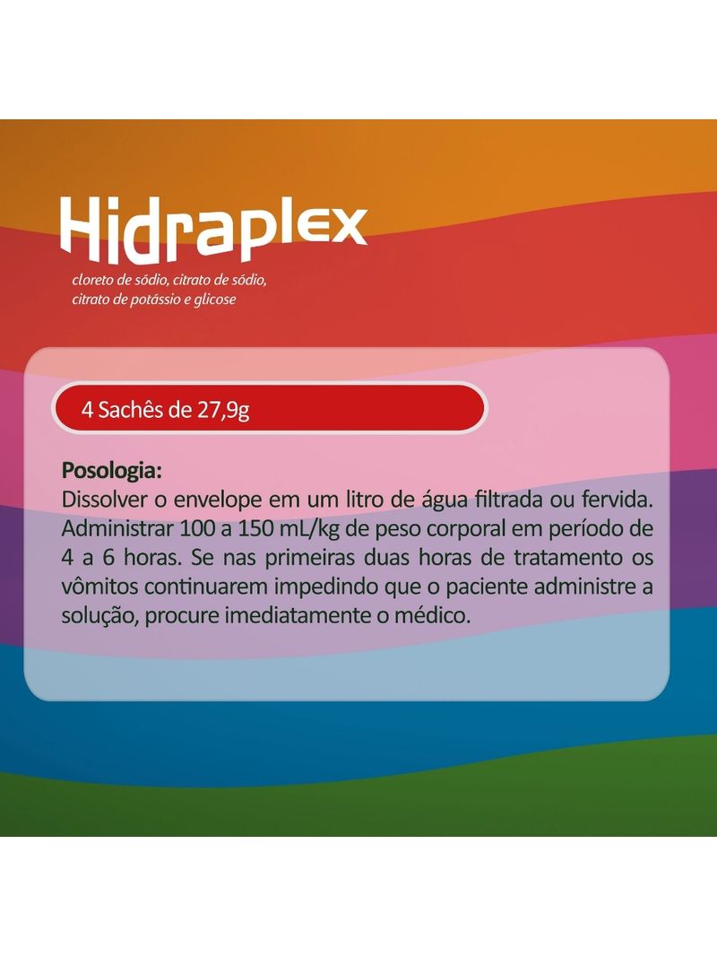 Hidraplex é indicado para prevenção de perdas de água e sais minerais do organismo e manutenção da hidratação após a fase de re-hidratação. Seu uso é contraindicado em caso de íleo paralítico, em perfuração intestinal e nos vômitos incoercíveis. Também é contraindicado em caso de alergia aos componentes da fórmula.