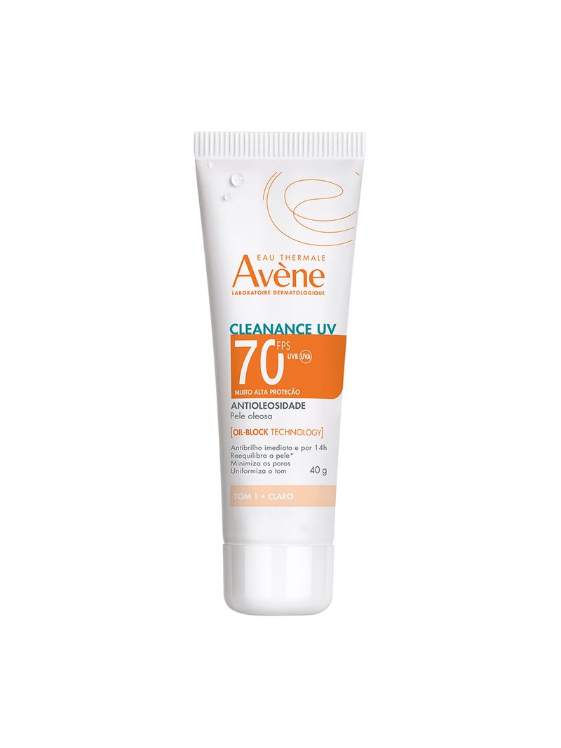 Avène Cleanance Protetor Solar Facial UV Antioleosidade FPS 70 Tom 1 Claro 40g é o primeiro protetor solar da linha com tecnologia oil-block que garante o controle de oleosidade e brilho por até 14 horas. Sua fórmula avançada oferece muito alta proteção solar FPS 70 e um toque de cor que se adapta perfeitamente a peles de tom claro.