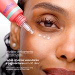 Sua fórmula ainda conta com ácido tranexâmico e glutationa, ativos despigmentantes e antioxidantes que uniformizam o tom da pele, reduzem inchaço e bolsas, e suavizam linhas finas.