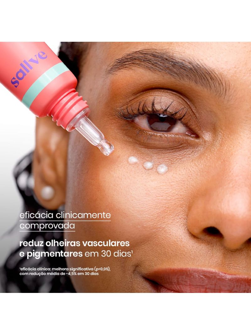 O Sérum Antiolheiras Sallve é um tratamento intensivo para a área dos olhos que une cafeína vetorizada e um peptídeo especialista para suavizar e reduzir olheiras vasculares (roxas ou azuladas) e pigmentares (amarronzadas).