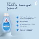 O cabelo das crianças Ă© mais fino e delicado que o cabelo dos adultos. Por isso, criamos a linha JOHNSONSÂź desenvolvida para crianças, formulada com ingredientes naturais especĂficos para os pequenos: cabelos macios, brilhantes e saudĂĄveis. O Shampoo Infantil JOHNSON'SÂź Cheirinho Prolongado, 200mL deixa os cabelos cheirosos por muito mais tempo por conta da tecnologia ESSĂNCIA FIXÂź. Especialmente desenvolvido para crianças com cabelos delicados, deixa um cheirinho de banho tomado, alĂ©m de contar com a exclusiva fĂłrmula CHEGA DE LĂGRIMASÂź, que evita irritação nos olhos. Toda a linha Ă© hipoalergĂȘnica, formulada para ser suave, livre de corantes, parabenos, sulfatos e ftalatos. Com pH fisiolĂłgico e dermatologicamente testado. Frasco com 20% de plĂĄstico reciclado, cuidando do seu bebĂȘ e do futuro do nosso planeta.