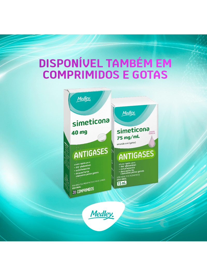 Este medicamento é indicado para pacientes com excesso de gases no aparelho digestivo. O acúmulo de gases no estômago e no intestino chama-se flatulência, que causa desconforto abdominal, aumento do volume abdominal, dor ou cólicas no abdômen. A eliminação dos gases alivia estes sintomas. Também pode ser usada como medicação auxiliar no preparo dos pacientes em exames médicos, tais como endoscopia digestiva ou colonoscopia. O início da ação ocorre entre 10 e 30 minutos após a ingestão. Seu uso é contraindicado em caso de alergia aos componentes da fórmula, distensão abdominal grave, cólica grave, dor persistente ( mais que 36 horas) e massa palpável a região do abdômen.
